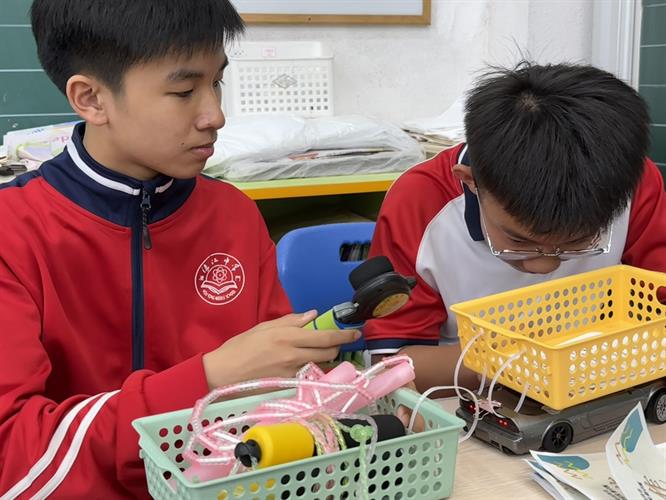 到教師辦公室收集廢紙,列印宣傳海報和任務卡。在遙控車裝上籃子,擺放任務卡及工具,運動任務包括跳繩一分鐘、俯臥撐一分鐘、開合跳一分鐘、引體向上一分鐘及200米計時。遙控車靈活穿梭校園,讓同學與搭擋一起完成任務,既可鍛鍊身體,又能增進友誼。