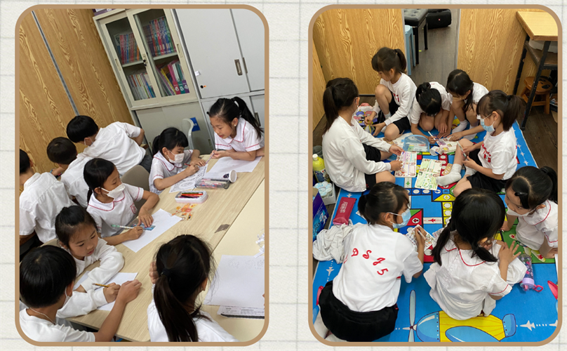 The storage room at school was cleaned and some tables and chairs inside were rearranged. Then, some stationeries from the lost and found box from each classroom were collected. Students took turns staying at the self-learning corner and looking after the students there. For safety, rules were posted to remind the students of the dos and don'ts.